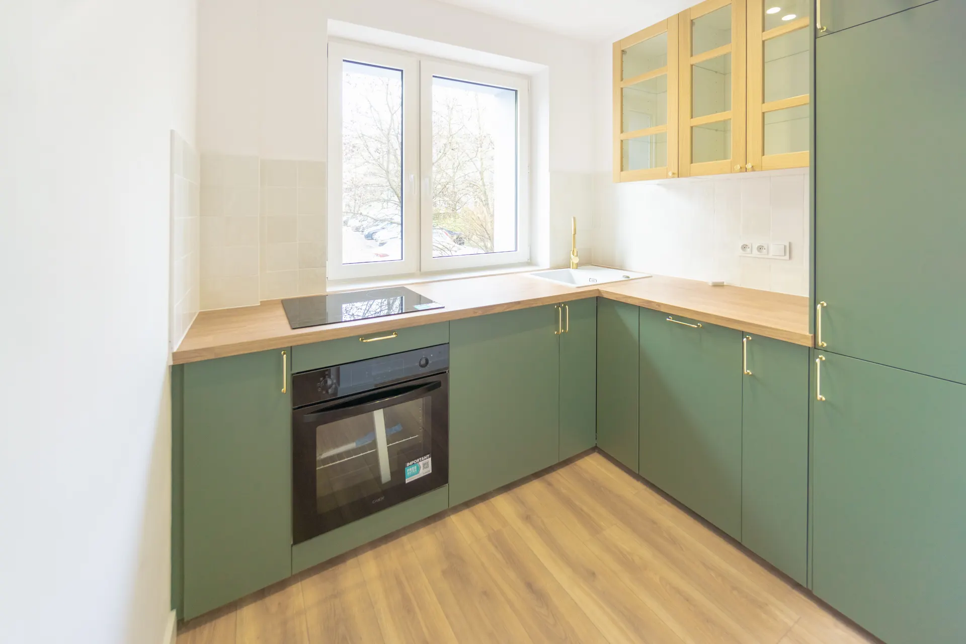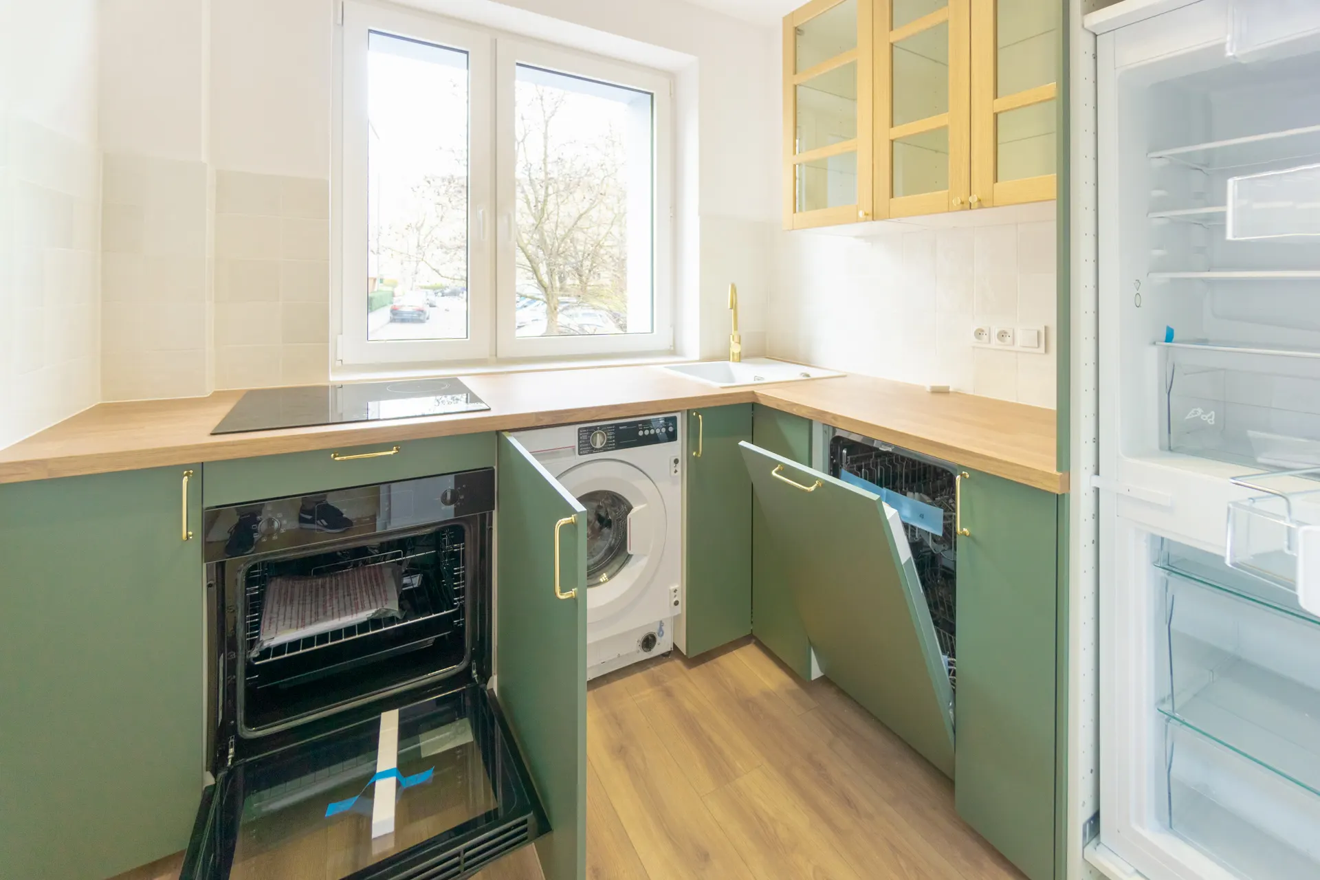 WYPOSAŻENIE: lodówka w zabudowie, zmywarka, piekarnik, płyta indukcyjna, pralka
